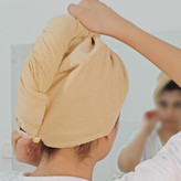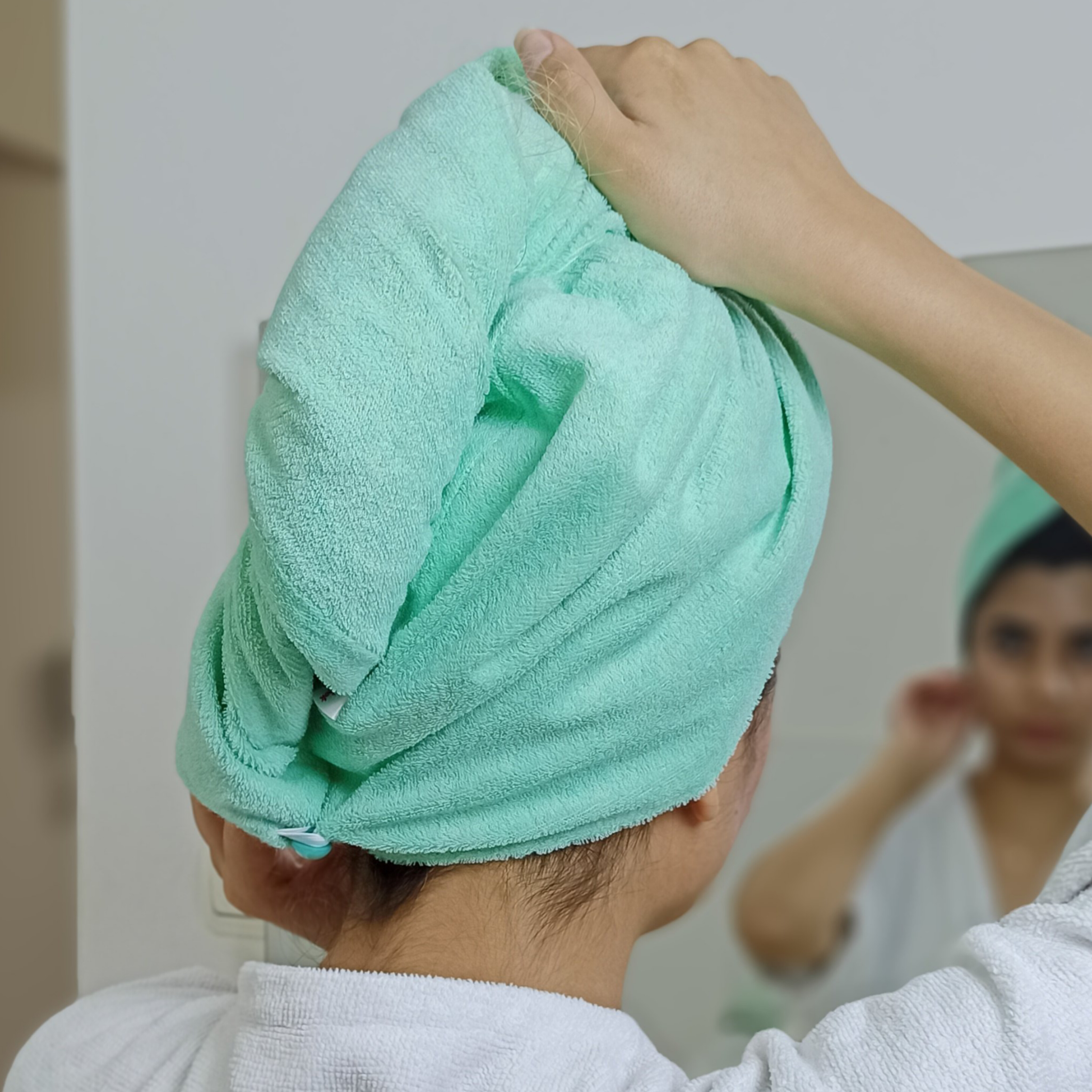 این حوله به دلیل داشتن دکمه و کش به راحتی روی سر قرار میگیرد و مانع باز شدن حوله و افتادن آن از سر میشود.