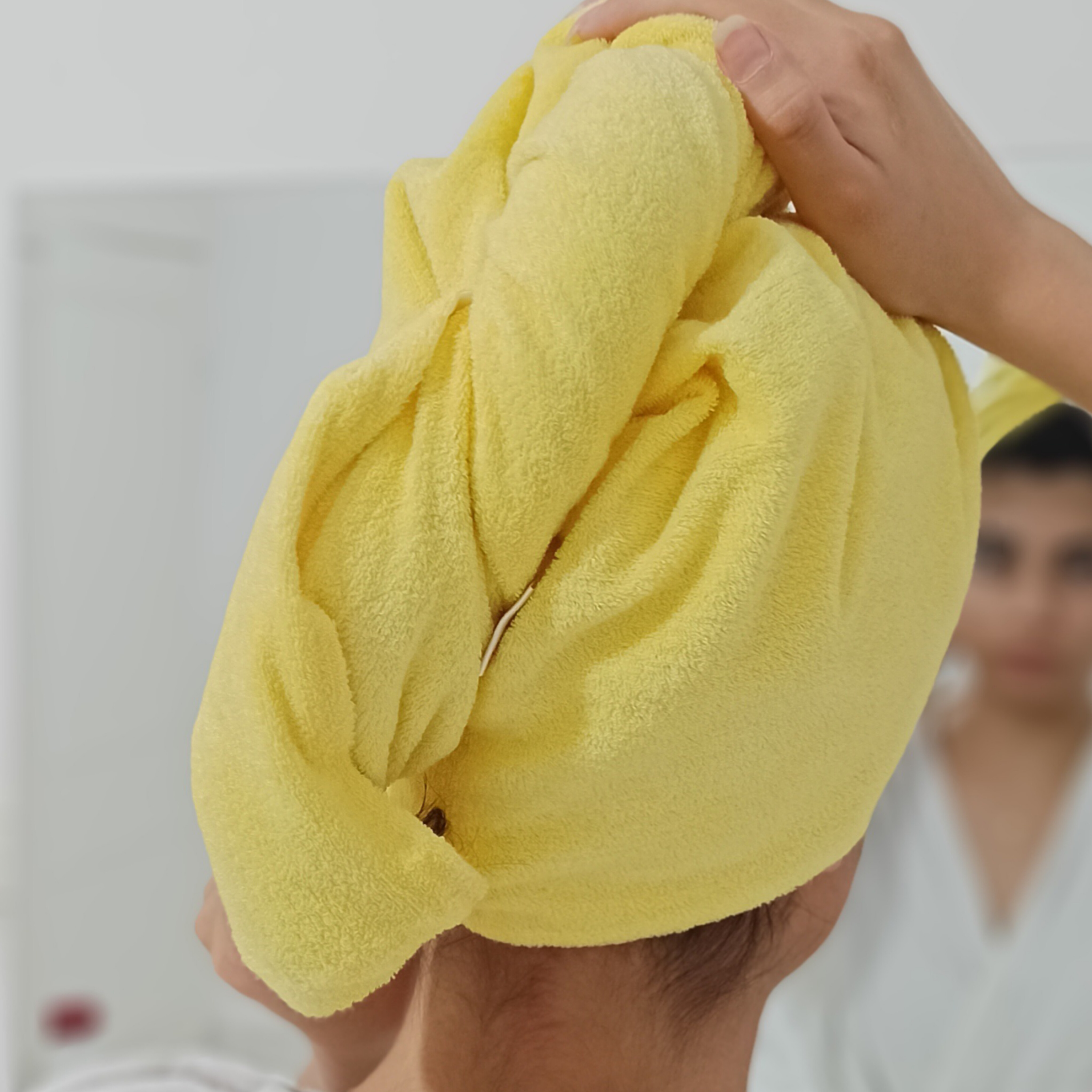 خیلی از خانم ها بعد از حمام موهاشون رو با حوله می پیچند تا در حین خشک شدن ، حالت هم بگیرند و صاف خشک بشند. رازکوک امروز حوله ای رو به شما معرفی میکنه که برای این کار طراحی شده،از چون دکمه قرار گرفته روی حوله باعث میشه تا بعد از پیچیدن مو داخل حوله مانع از باز شدن اون بشه و موها بهتر حالت بگیرند. بخاطر جنس نخی که دارد خیلی راحت تر هم روی سر قرار میگیره و وزنش هم خیلی سبک تره و سر هم نمیخوره.